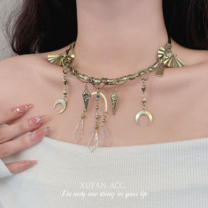 古代ギリシャの女神レトロクリスタルペンダントタッセルネックレスファッショナブルな気質パーソナライズされた鎖骨チェーンクロスボーダーネックレス