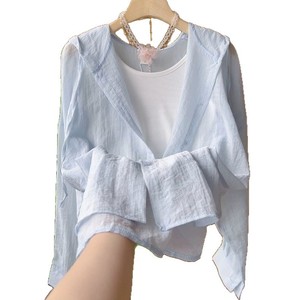 2025新款韩版休闲连帽防晒衬衫女夏季时尚减龄洋气开衫上衣批发
