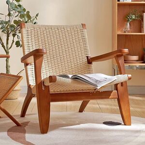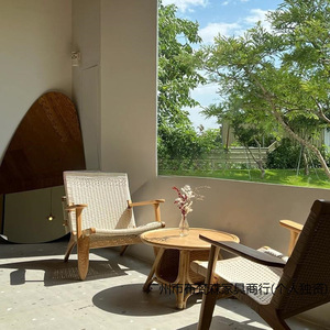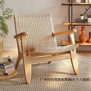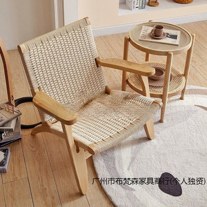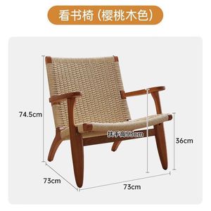 阳台舒适看书椅子休闲沙发椅阅读实木日式客厅绳编懒人家