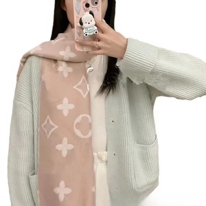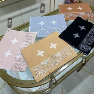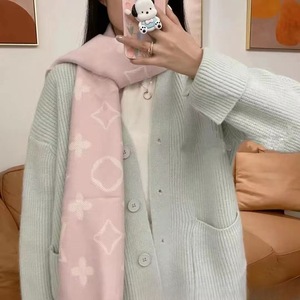 高级感老花字母羊毛围巾女秋冬季干枯玫瑰粉披肩长款双面百搭围脖