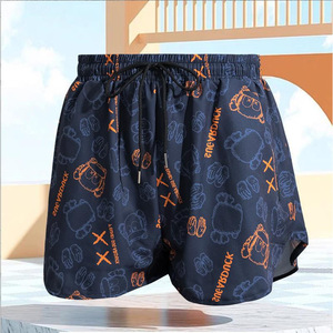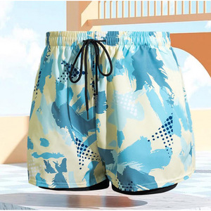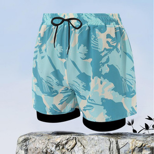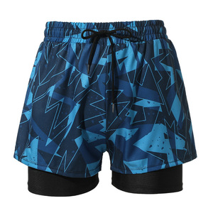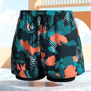 ゆったりとしたファッショナブルなメンズ水泳パンツ、二重層の恥ずかしさ防止プロ仕様の5点速乾性水着、スポーツビーチ水泳用品