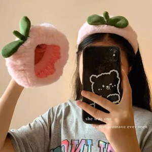可爱粉色水蜜桃毛绒洗脸发箍女小草敷面膜专用束发带防滑头箍发饰