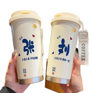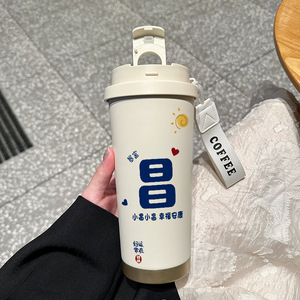 2025新款蓝字百家姓316不锈钢咖啡杯网红风双饮吸管保温杯水惠惠