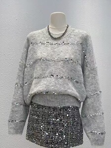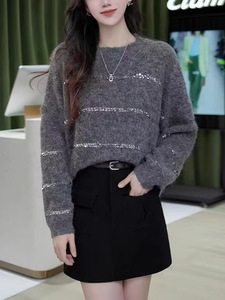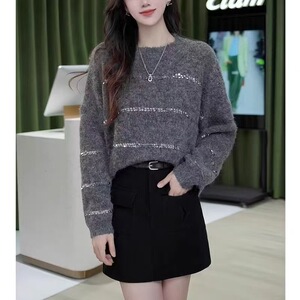 欧美跨境女装新款秋冬圆领长袖针织毛衫休闲街头风上衣毛衣