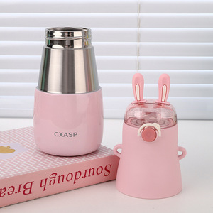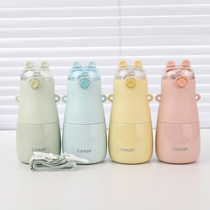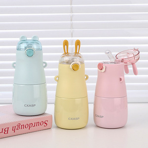漫画の動物魔法瓶カップ 304 ステンレス鋼の弾性蓋ストローカップポータブルカップ見栄えがよくかわいい学生ウォーターカップ