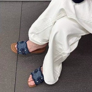 夏インスタイル大きいサイズ韓国デニムスリッポン女性のアウターフレンチスモールサンダル超ソフトフラットハーフスリッパ