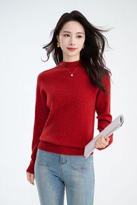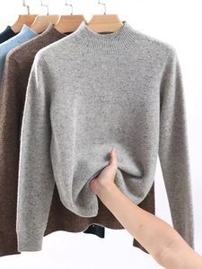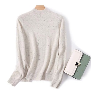 美利诺羊毛针织打底衫秋季新款半高领彩点纱无缝套头内搭羊毛衫女