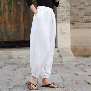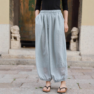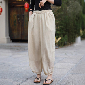 ヨガパンツ、コットンとリネンの女性用ピラティスルーズホームパンツ、多用途ブルマー、文学旅行写真、超ルーズ太極拳パンツ