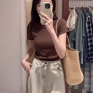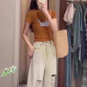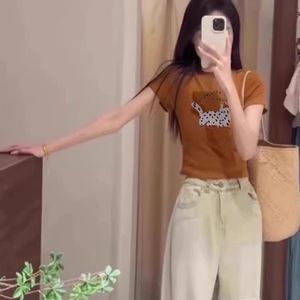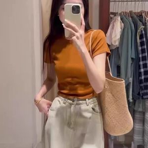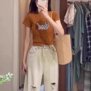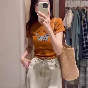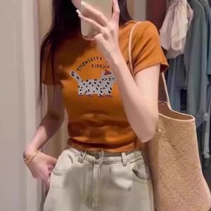 2025新款泰式多巴胺橘色印花正肩短袖T恤女夏季穿搭圆领体恤上衣