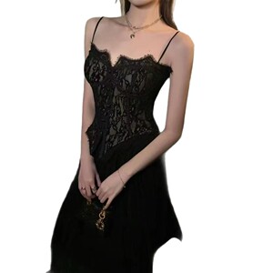 1960年夏の新しいアメリカンピュアディザイアホットガールスタイルの胸パッド付きベスト、フィッシュボーンピンチウエスト痩身レースチューブトップ