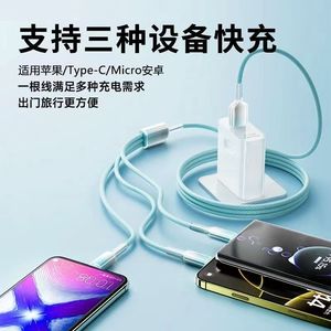 Apple Android type-c 1対3 120W高速充電編組充電器ケーブルに適したアイスクリスタルスリーインワンデータケーブル