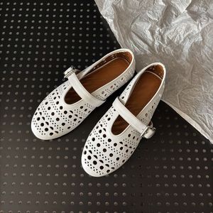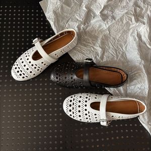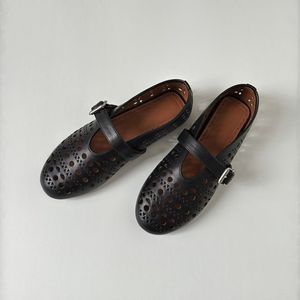 手渡し無地スポット!フレンチレトロ本革中空ワンラインバックルバレエシューズフラットメリージェーンシューズ