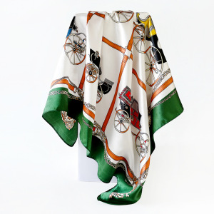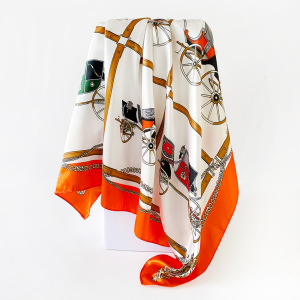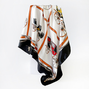 90 センチメートルシルクスカーフターバン卸売クラシック馬車プリントシルクスカーフヨーロッパとアメリカの女性のクロスボーダーサテン大正方形スカーフショール