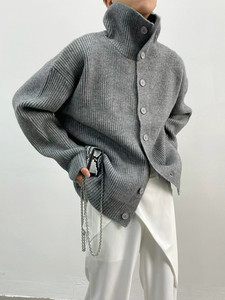 外国貿易新しいシンプルなピットストリップシングルブレストルーズレイジースタイルニットジャケット女性のための大きいサイズのニットカーディガン女性のための