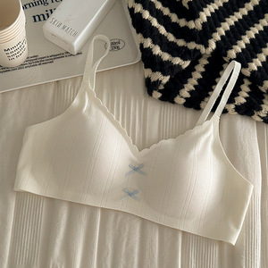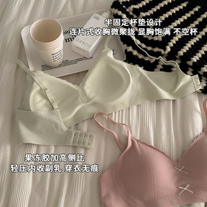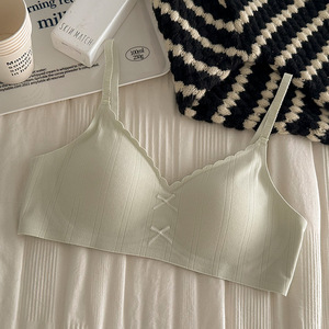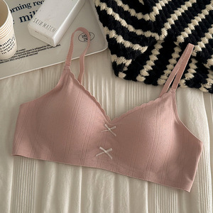 Jiazhi 純粋な糸綿の小さな胸の下着女性用、リムなし、甘いリボン、プッシュアップ、大きなシームレスで快適なブラジャー