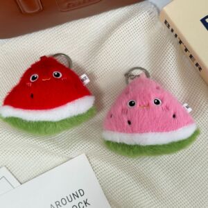 爆款可爱萌表情西瓜毛绒玩具钥匙扣水果西瓜毛绒公仔挂饰挂件批发