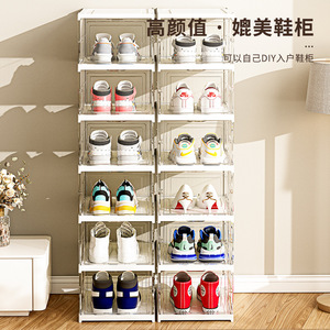 免安装透明鞋柜收纳盒可折叠一拉成型鞋子收纳柜塑料鞋盒厂家批发