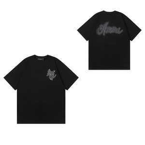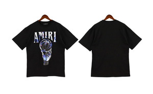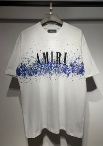 クロスボーダー卸売スプラッシュインク流れるペイント迷彩星空落書きレター半袖カジュアルハイストリートカップル着用 Tシャツイン