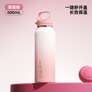600ml【渐变粉/316不锈钢内胆】一键开盖运动保温杯