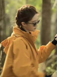 【现货】刘亦菲同款黄色冲锋衣外套女新款户外三合一防风防水上衣