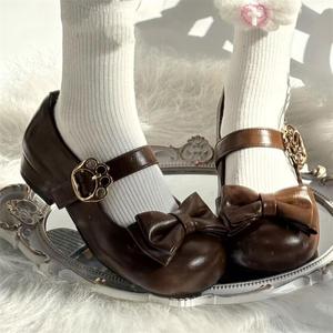 ラウンドトゥロリータシューズローヒールレディースシューズリボン甘くてかわいいカピバラJK制服靴とスカート