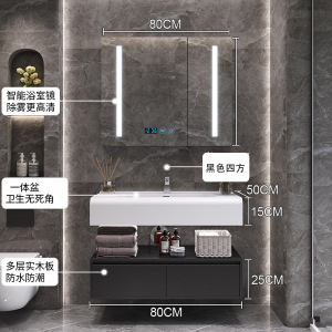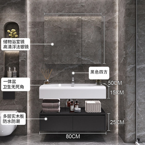 80CM Qimei 石一体型洗面器 + スマートミラーキャビネット