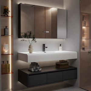 120CM Qimei 石一体型洗面器 + スマートミラーキャビネット