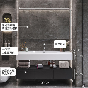 100CM Qimei 石一体型洗面器 + スマートミラーキャビネット