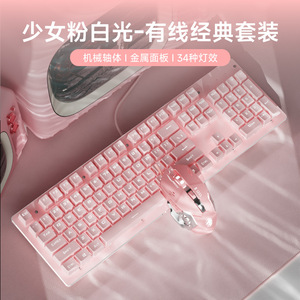 少女粉-白光【有线经典版键鼠耳机三件套】