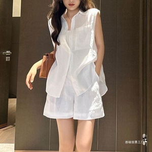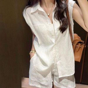 オールドマネースタイルリネンスーツ女性のシャツ夏の新しいファッション日焼け止め白綿とリネンシャツルーズワイドレッグショーツ