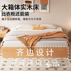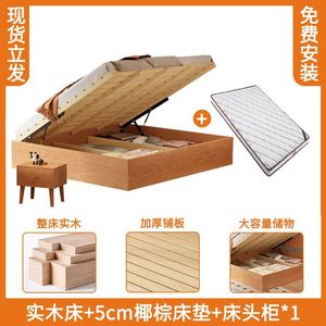 大床E0级储物北欧风橡胶木开环保储物侧气压储物床气压收纳卧室床