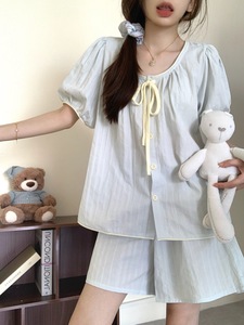 女性のためのパジャマ夏クラウドコットン 2025 新しいスタイル甘くてかわいい韓国スタイルの半袖ショーツホームウェアセット胸パッド付き