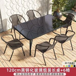 120cm ブラック強化ガラス組立長テーブル+チェア6脚