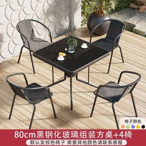 80cm ブラック強化ガラス組み立て正方形テーブル + 椅子 4 脚