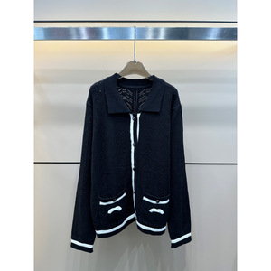 25年早秋新款香家logo宽松慵懒风翻领长袖单排扣开衫宽松百搭上衣
