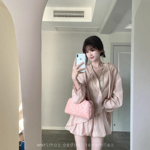 CallmeEar//甜桃泡泡套装女夏季薄款长袖上衣+花苞裙裤