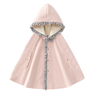 子供の冬の長い防風マント暖かく厚みのあるファッショナブルな女の子の子供服ベビーコートフード付きマント