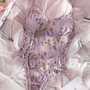 2025 新しいクロスボーダードロップシッピング紫蝶刺繍テディボディスーツボディスーツ