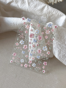 日系浮雕美甲贴纸网红新款莫奈花园油画小野花DIY蝴蝶结指甲贴纸