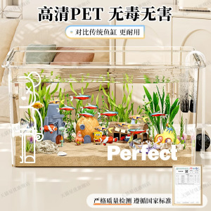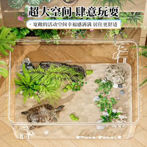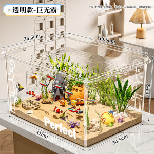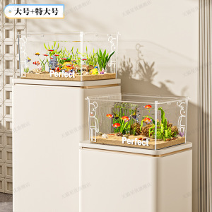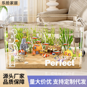透明な水槽、小型家庭用金魚水槽、デスクトップリビングルーム模造ガラス生態造園水槽、正方形の厚みのあるカメ水槽