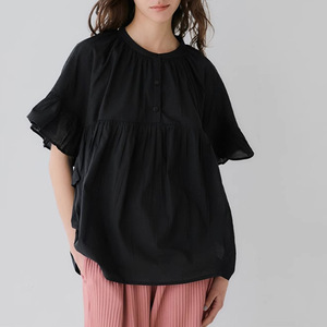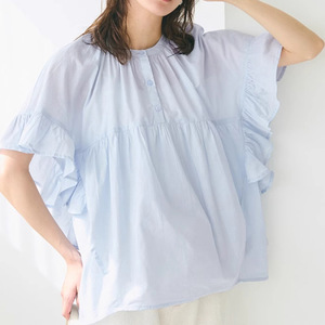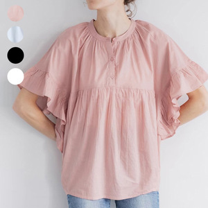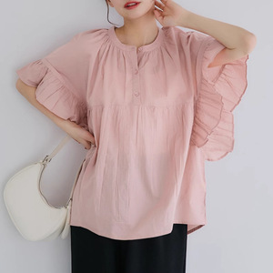 ロッテ日本製無地シャツレディース夏新作甘くて可愛い蓮の葉袖パッチワークベビードールトップス