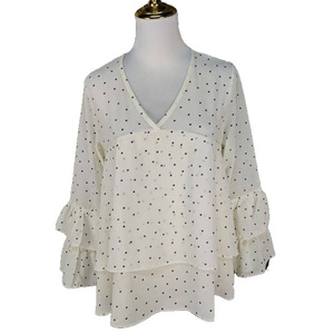2025年新作夏フレンチVネックルーズフリルシフォントッププルオーバーかわいい水玉日焼け止めShenglong