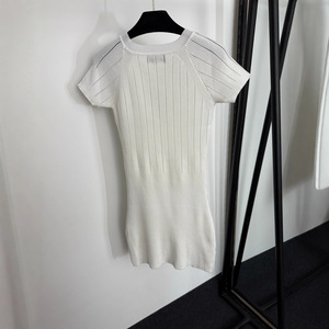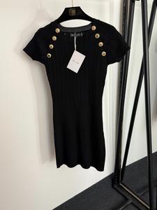 2025夏季南油高端修身新款狮子头金扣包臀收腰镂空针织短袖连衣裙