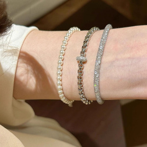 Xiaohongshuの人気のクールなスタイルのチェーンフラッシュダイヤモンドランニングリングブレスレットアクセサリー絶妙で多用途なドロップシッピング