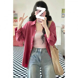衬衫女内搭叠穿夏季薄款宽松显瘦多巴胺长袖薄款衬衣外穿开衫