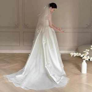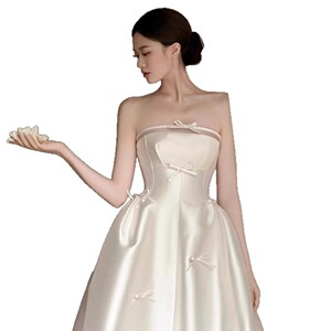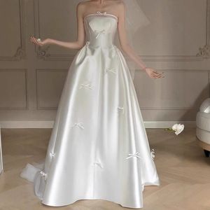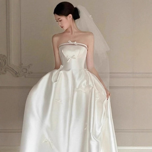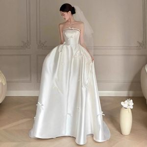 フレンチサテンライトウェディングドレス2025新しい花嫁気質白いチューブトップウェルカムガーゼリボンドレス