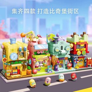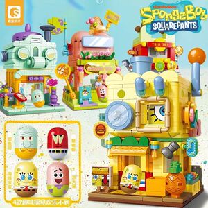 Senbao ビルディングブロックスポンジボブ本物のストリートビューシリーズビルディングブロック教育組み立ておもちゃモデル装飾品誕生日ギフト