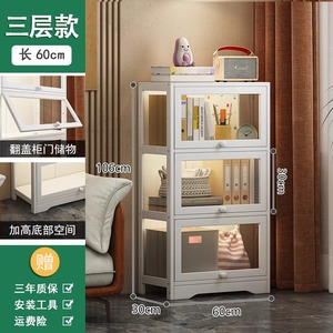 ️ロック付きグレードアップ️【クリームホワイト】三層60CM【三面透明・跳ね上げ扉防塵】