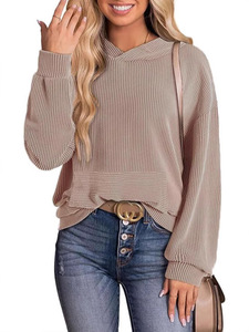 2025秋冬亚马逊欧美跨境套头扭条连帽衫休闲宽松口袋圆领长袖卫衣