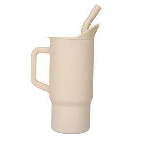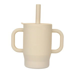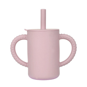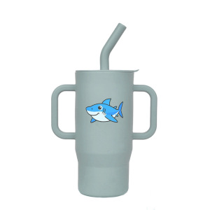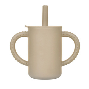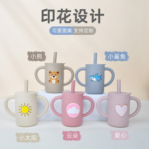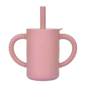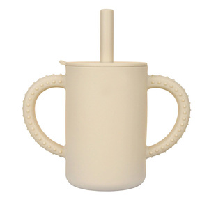 蓋付きベビーシリコン学習ドリンクカップ、ストローカップ、ベビーフードグレードの子供用落下防止ハンドルドリンクカップ